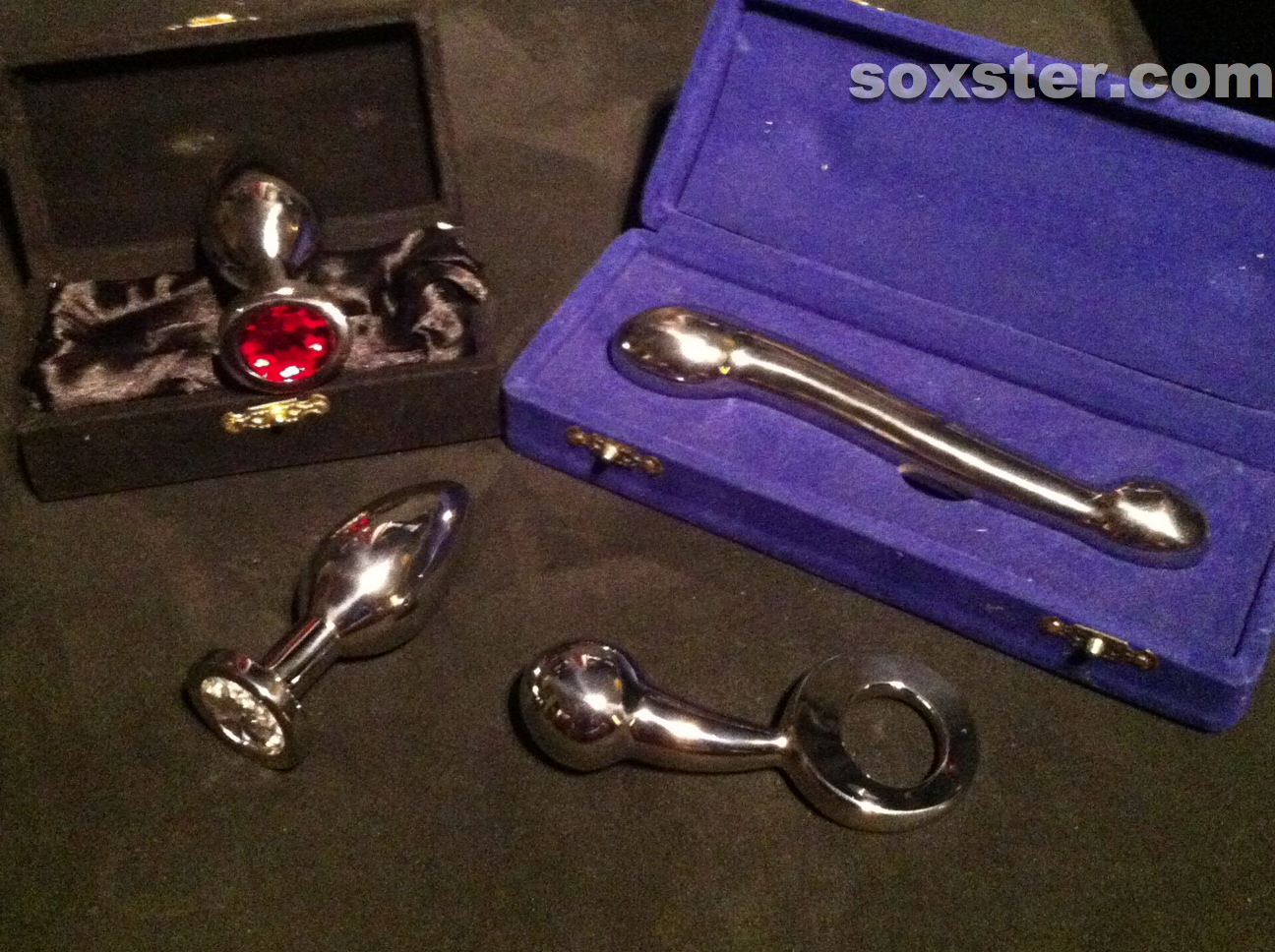 My love of stainless steel toys is well documented on this site. I thought you would like to know about my recent purchases. My four latest toys are three butt plugs and a solid steel dildo. Two of the butt plugs are the same but with different jewelled ends – one in ‘diamond’ (clear) and red. The solid dildo is a good warm up to one of my favourite toys to use on boys – the Njoy Eleven. Google it if you don’t know it – a truly excellent toy.