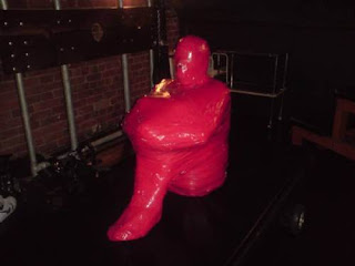In terms of mummification safety the two big safety tips are to always have a way of getting them out of the cling wrap quickly and safely (without risking cutting their skin or accidentally removing their balls in the process) and assume they will become disorientated and fall over even if they are kneeling (so make sure any furniture and sharp objects are kept well away from them).
